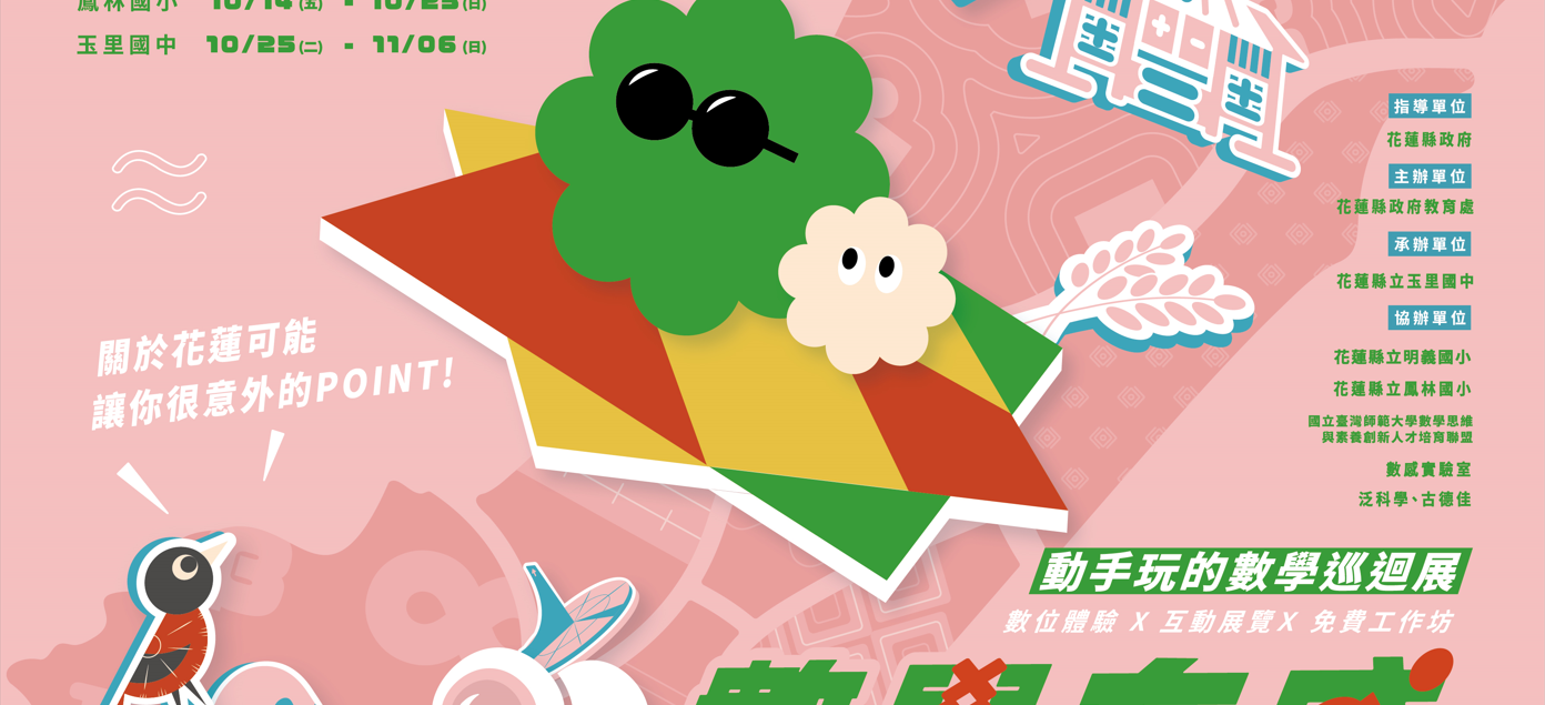 在「數學有感——動手玩的數學巡迴展」,我們將為你戴上名為「數感」的眼鏡來看花蓮,你會看見很多花蓮平常所不知道的樣貌。讓我們邊玩邊發現不一樣的花蓮吧!